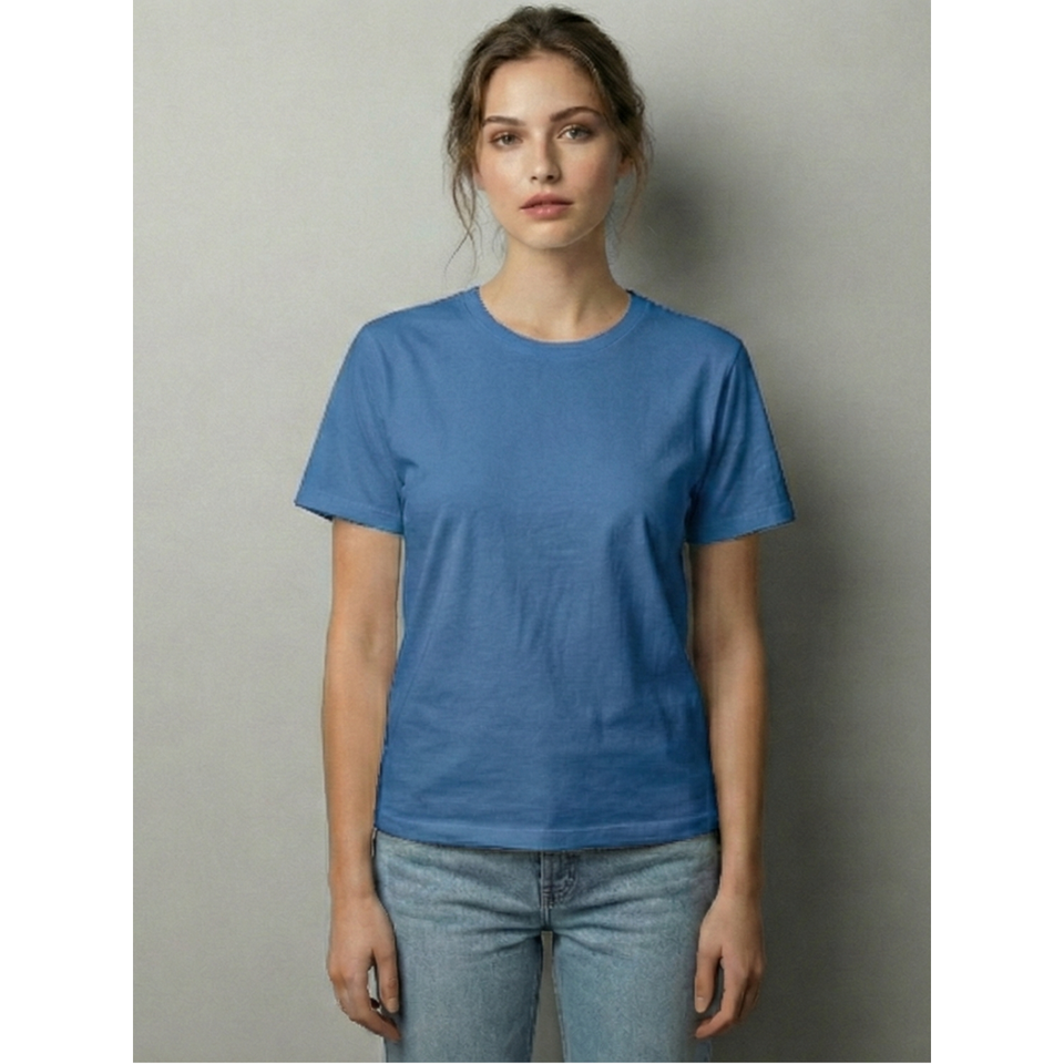 เสื้อยืดผู้หญิงสีน้ำเงินสไตล์โบฮีเมียน คอกลม ผ้าฝ้ายเนื้อนุ่ม ระบายอากาศได้ดี ทรงหลวม ใส่สบายทุกวัน เหมาะสำหรับฤดูร้อน ผลิตในอินเดีย