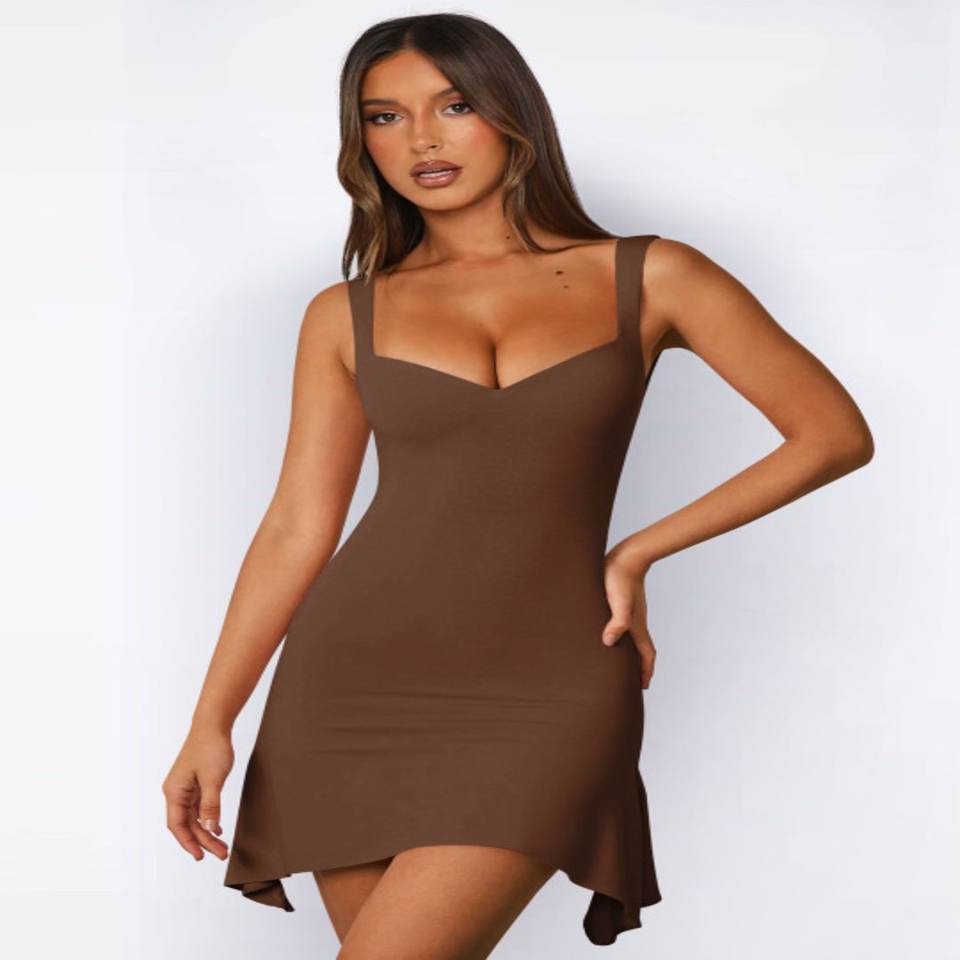 เดรสทรงบอดี้คอนสั้นสำหรับผู้หญิง ผ้าโพลีเอสเตอร์/สแปนเด็กซ์ 100% คอรูปหัวใจ แขนกุด กระชับเอว หรูหรา เซ็กซี่ แบบ ODM สำหรับฤดูร้อน
