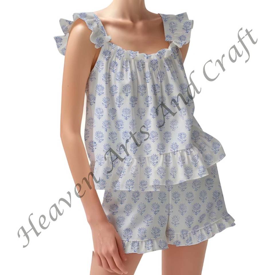 ชื่อผลิตภัณฑ์:ชุดนอนผ้าฝ้าย100% พิมพ์ลายมีระบาย