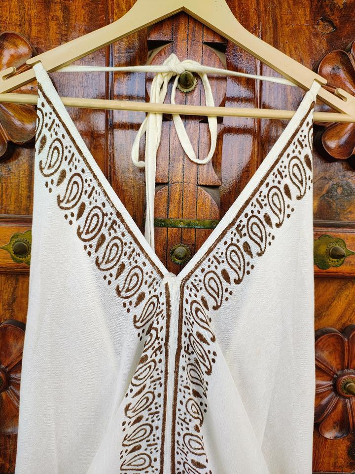 เดรสยาวลำลองสไตล์โบฮีเมียนสำหรับผู้หญิง ผลิตจากผ้าฝ้ายทอแบบเป็นมิตรต่อสิ่งแวดล้อม ซักได้ ไม่มีแขน ดีไซน์เอวธรรมชาติและเปิดหลัง