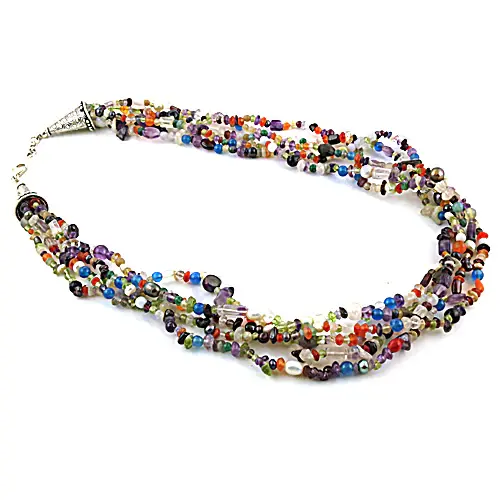 สร้อยคอผู้หญิงสไตล์โบฮีเมียนประดับอัญมณีหลากหลายเม็ด ดีไซน์ทันสมัย น่ารัก โซ่โลหะผสม เหมาะเป็นของขวัญ เครื่องประดับ หินควอตซ์เป็นหินหลัก