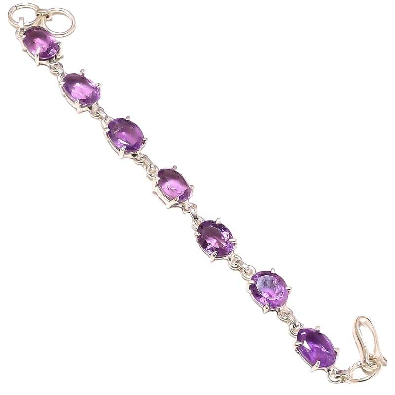 สร้อยข้อมือสำหรับผู้หญิงพลอยอเมทิสต์ธรรมชาติพลอย febrpuary birthstone เครื่องประดับงานหมั้นหมายงานแต่งสร้อยข้อมือเงินสเตอร์ลิง925