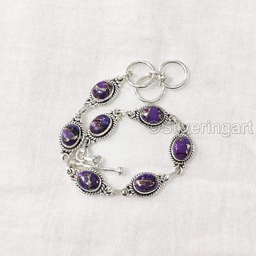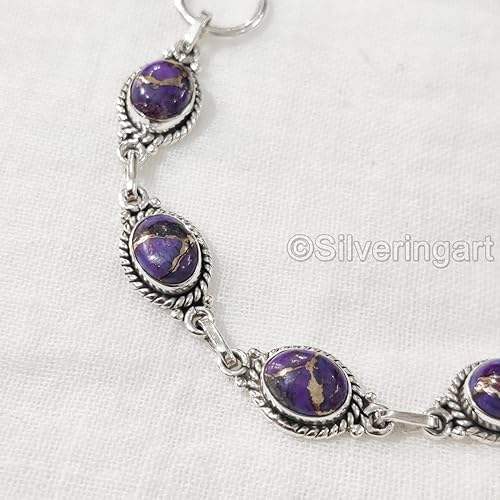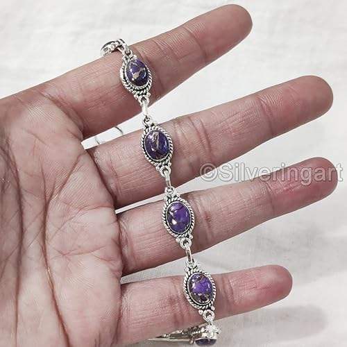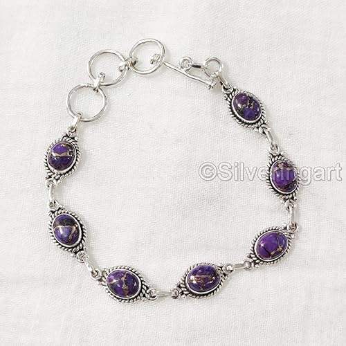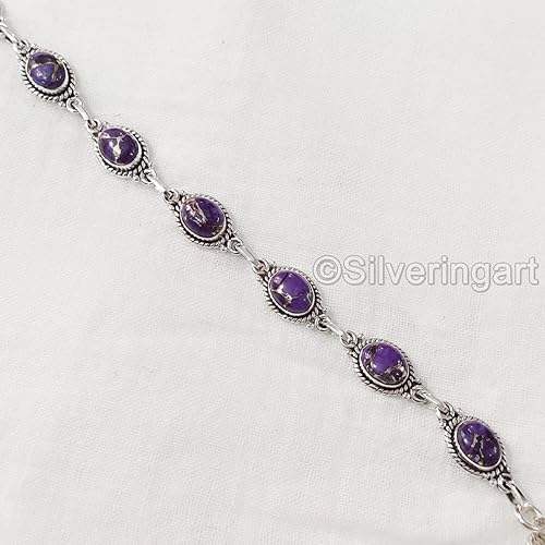 สร้อยข้อมือสตรีพลอยเทอร์ควอยซ์จากทองแดงสีม่วงธรรมชาติเครื่องประดับทำด้วยมือกำไลข้อมือเงินสเตอร์ลิง925