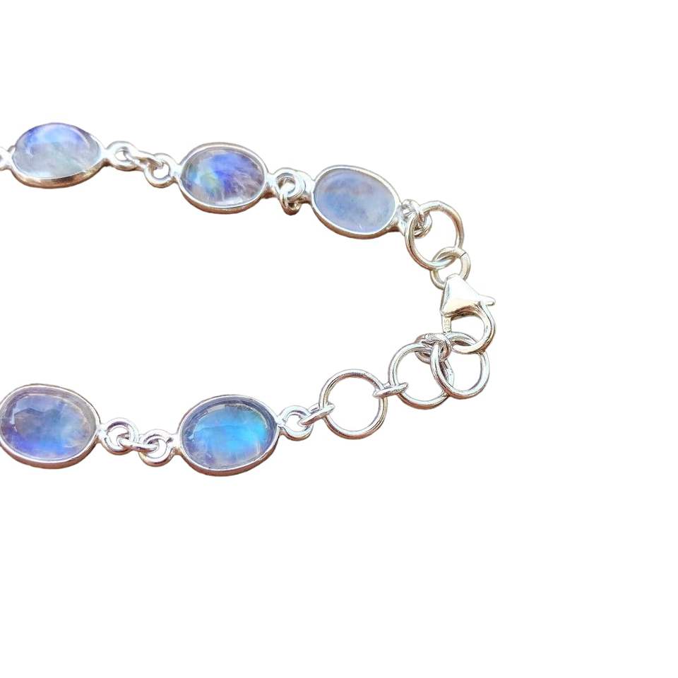 สร้อยข้อมือสำหรับผู้หญิงพลอยมูนสโตนสีรุ้งธรรมชาติอัญมณีสำหรับการหมั้นหมายเครื่องประดับแฮนด์เมดสร้อยข้อมือเงินสเตอร์ลิง925