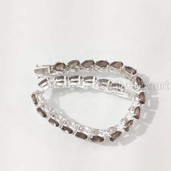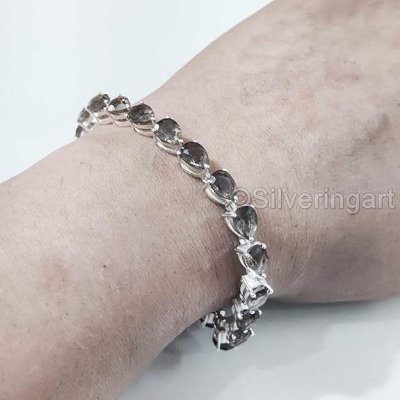 สร้อยข้อมือผู้หญิง หินควอตซ์สโมคกี้ธรรมชาติ ของขวัญวันครบรอบแต่งงาน คริสต์มาส เครื่องประดับทำมือ สร้อยข้อมือเงินแท้ 925