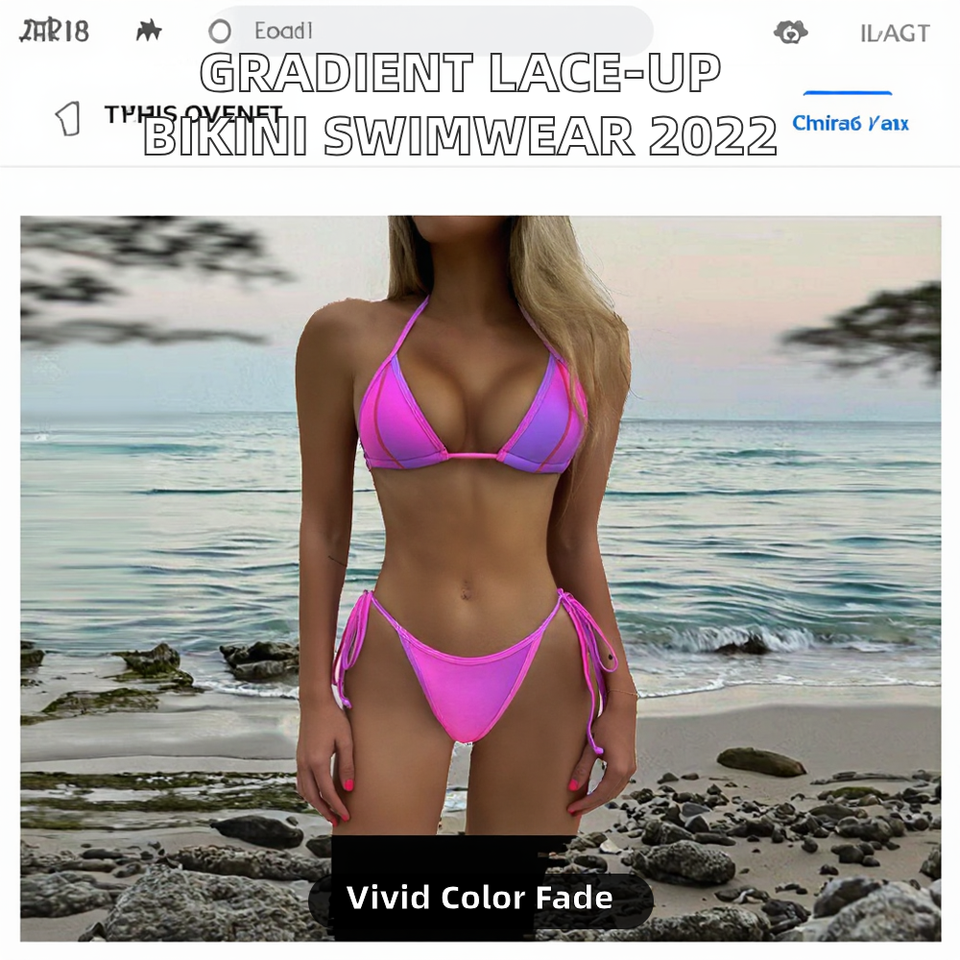 ชุดว่ายน้ำบิกินี่แบบผูกเชือก 2 ชิ้น ลายพิมพ์บราซิลไลน์ไล่สี พร้อมสายรัดแบบแยกส่วนสำหรับผู้หญิง