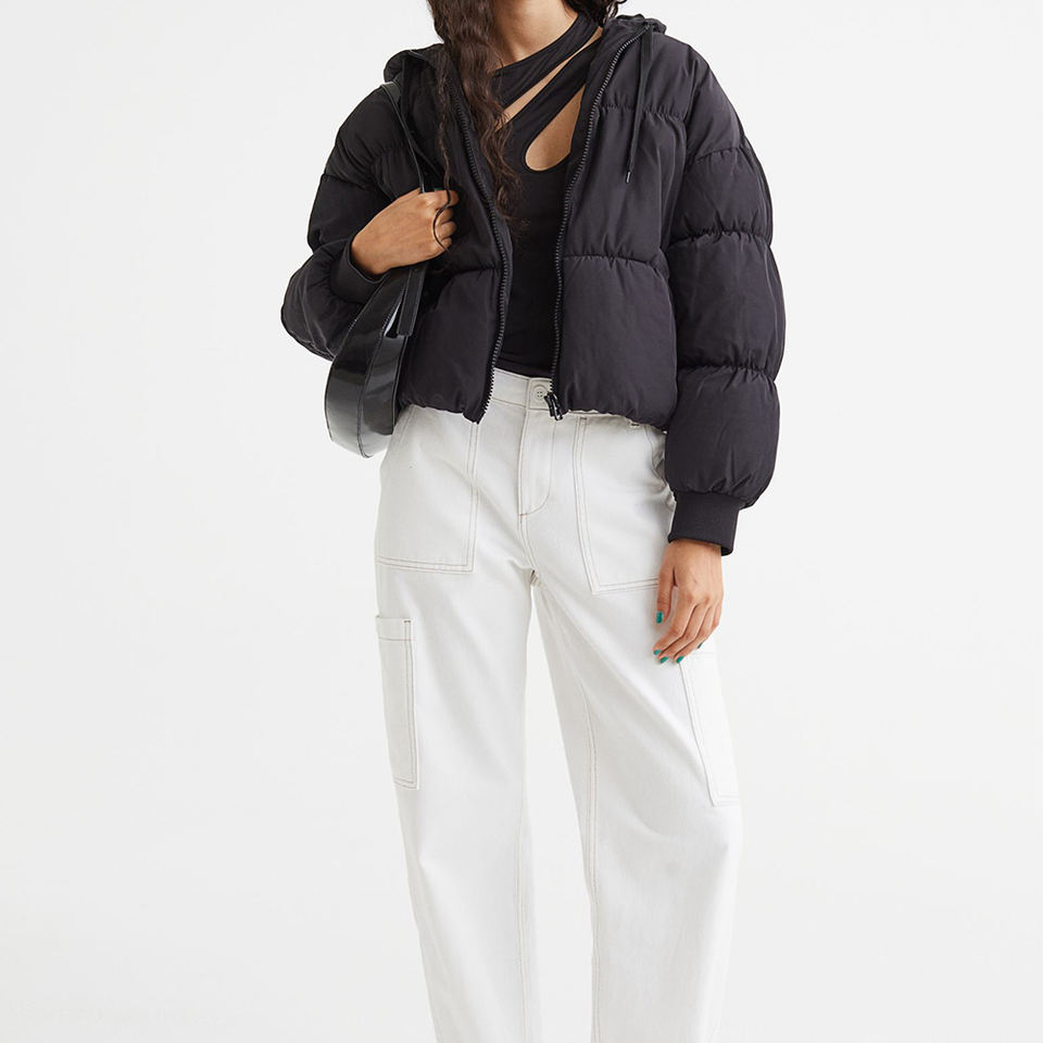 แจ็กเก็ตปลาปักเป้าสำหรับผู้หญิงทำจากผ้าฝ้ายระบายอากาศได้ดีมีซับในทำจากไม้ไผ่และคอเสื้อลูกเรือแบบถอดได้