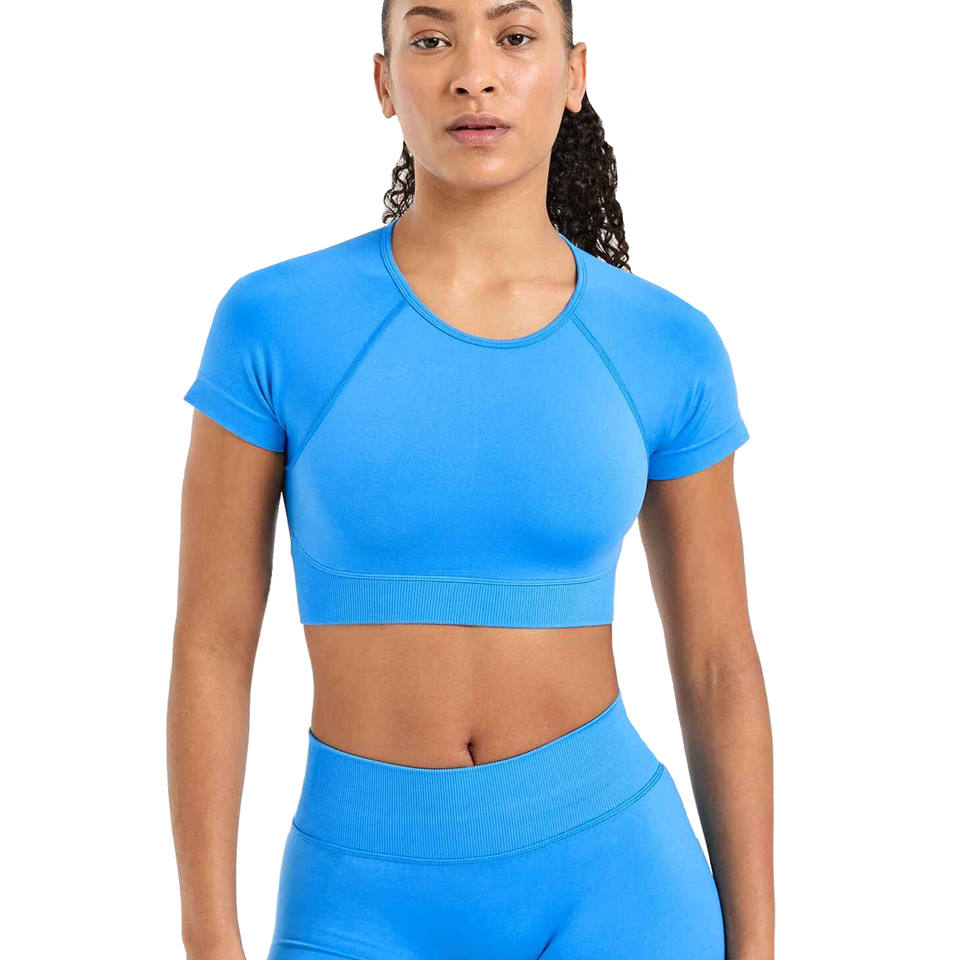 เสื้อครอปเอวลอยสำหรับเล่นโยคะระบายอากาศได้ดีเป็นมิตรกับสิ่งแวดล้อม