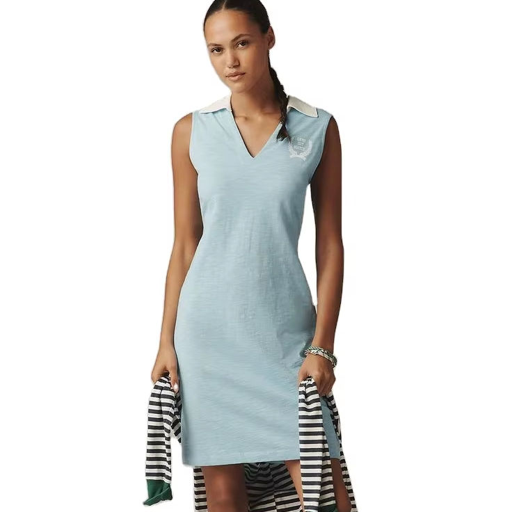 เดรสมินิสำหรับเล่นกอล์ฟผ้าฝ้ายถักระบายอากาศสำหรับผู้หญิงมีโลโก้ตามสั่งป้องกันรังสียูวีสำหรับใส่เล่นกอล์ฟและใส่สบายๆ