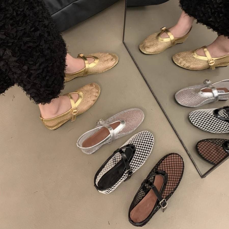 รองเท้าตาข่ายระบายอากาศสำหรับผู้หญิงรองเท้าส้นเตี้ยรองเท้าส้นเตี้ยแบบเรียบสำหรับสวมใส่ทุกวันน้ำหนักเบา