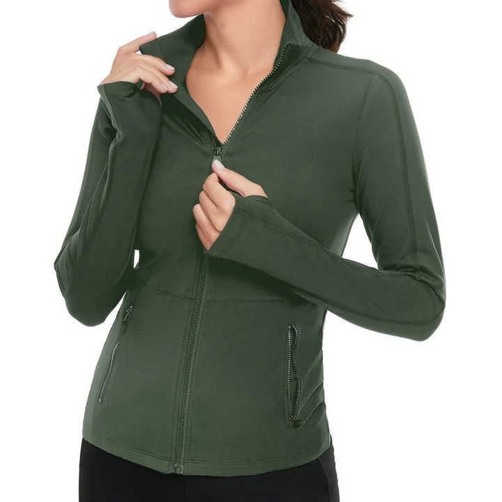 เสื้อแจ็คเก็ตออกกำลังกายแขนยาวสำหรับผู้หญิง ผ้าตาข่ายระบายอากาศ มีซิป เหมาะสำหรับโยคะ วิ่ง ออกกำลังกาย และวิ่งจ๊อกกิ้ง