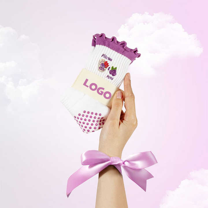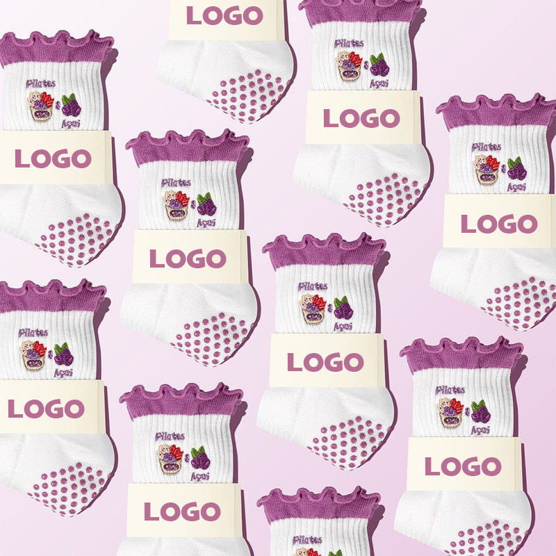 ถุงเท้าพิลาทีสระบายอากาศได้ดีไม่ลื่นสำหรับผู้หญิงถุงเท้าหุ้มข้อปักลายได้ตามต้องการสำหรับการเล่นโยคะ