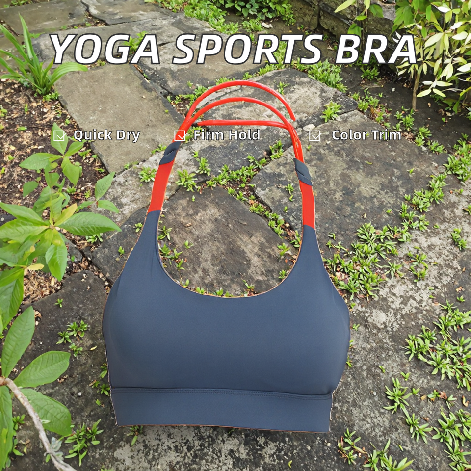 เสื้อชั้นในกีฬาสำหรับผู้หญิง ระบายอากาศ แห้งเร็ว รองรับปานกลาง เหมาะสำหรับวิ่ง ดีไซน์คอวี แต่งขอบตัดสี ขายส่งแบบไม่มีลาย