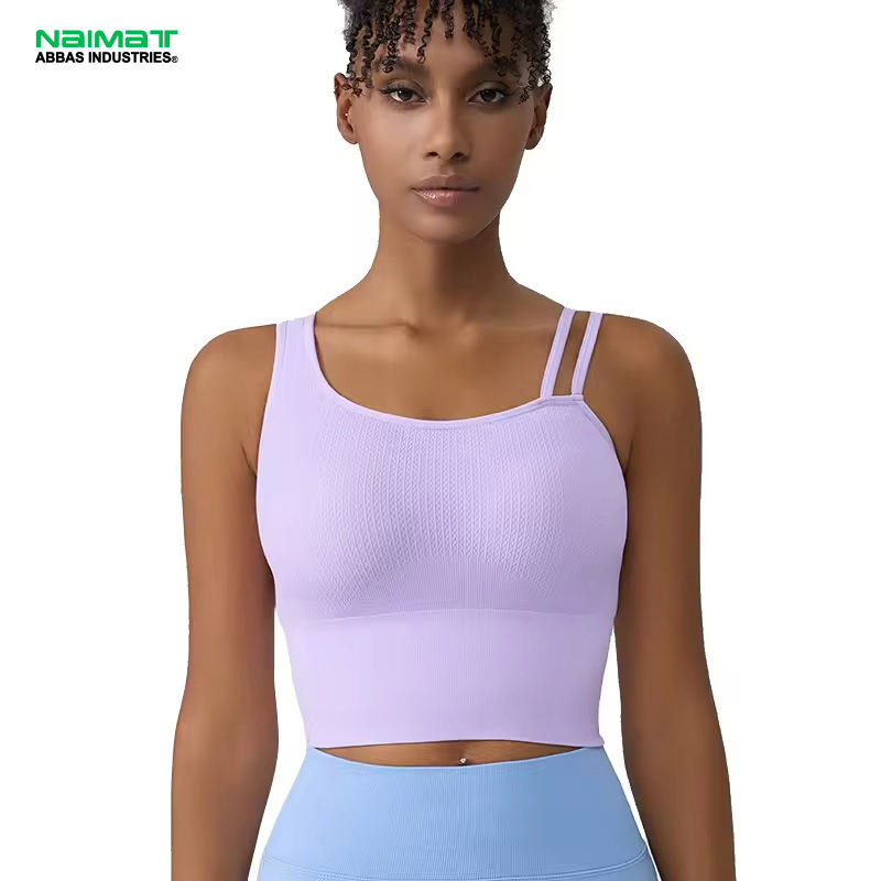 เสื้อกล้ามออกกำลังกายแบบไร้ตะเข็บสำหรับผู้หญิง ดีไซน์เสื้อสองชั้น ระบายอากาศได้ดี แฟชั่นสำหรับเล่นโยคะ ชุดชั้นในกีฬา โลโก้ด้านหน้า รองรับได้ดี