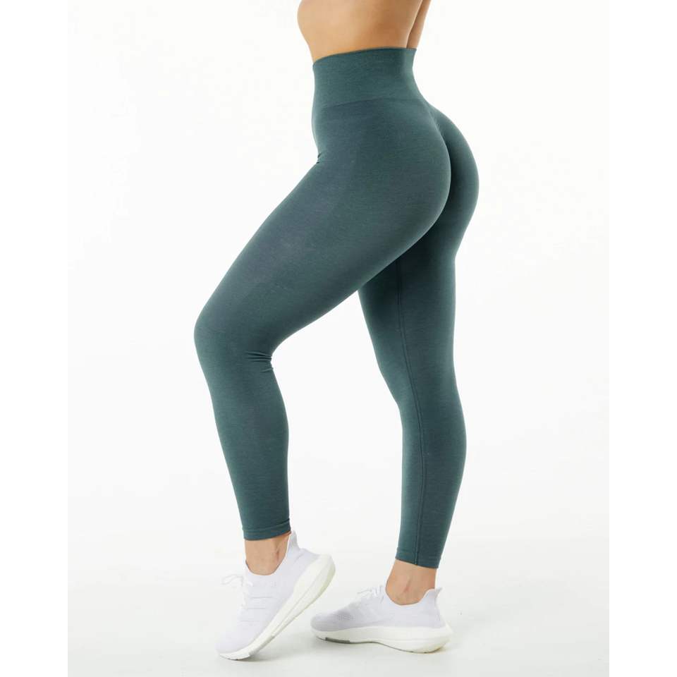 กางเกงเลกกิ้งรัดรูปไร้รอยต่อระบายอากาศได้ดีของผู้หญิง51% โพลีเอไมด์38% โพลีเอสเตอร์11% อีลาสเทนเอวสูงสีทึบแนวลำลอง