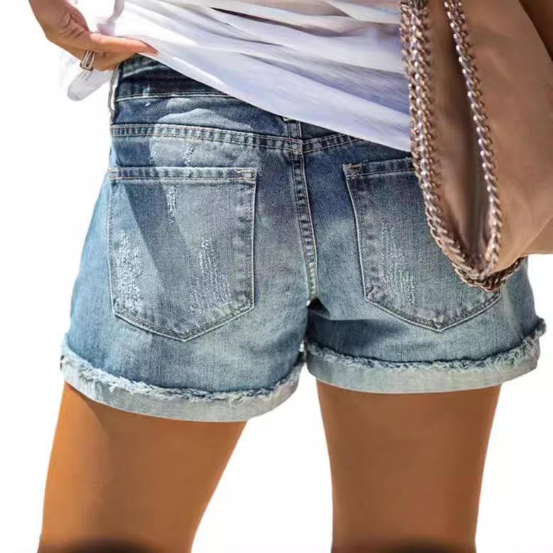Women's Breathable Straight Casual Hot High Waist Distressed Washed Denim Shorts