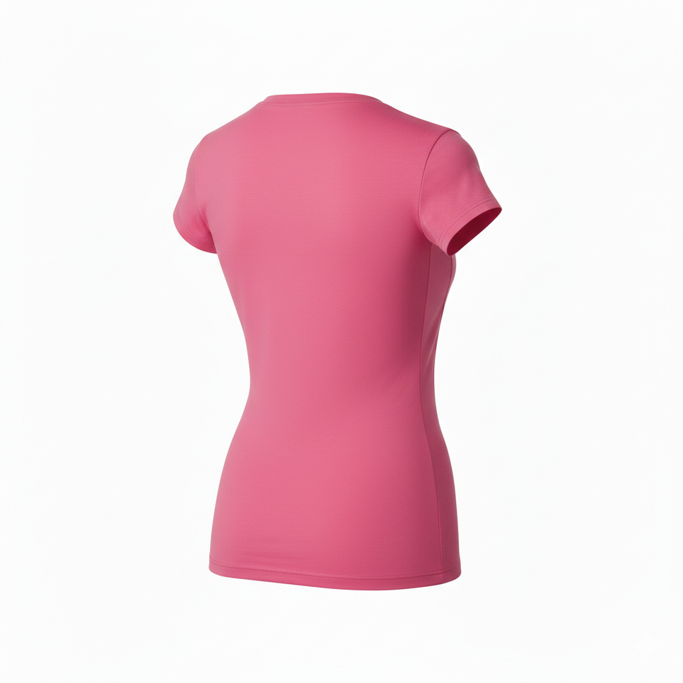 เสื้อยืดฟลีซฟิตเนสสำหรับผู้หญิง ระบายอากาศได้ดี ซักแล้ว แห้งไว พร้อมขนนกและโลโก้ ผลิตจากโพลีเอสเตอร์/คอตตอน ผลิตในประเทศปากีสถาน