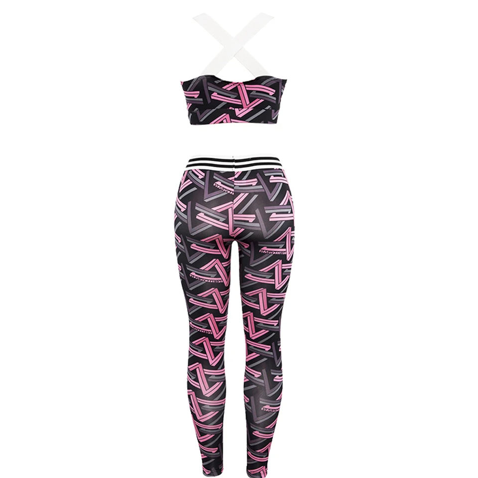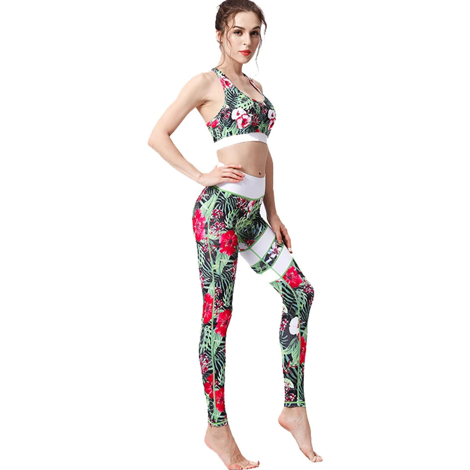 ชุดกีฬาสำหรับเล่นโยคะของผู้หญิงชุดเสื้อผ้าแนวสตรีทเอวยางยืดพิมพ์ลาย