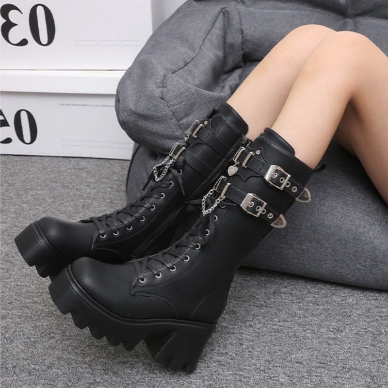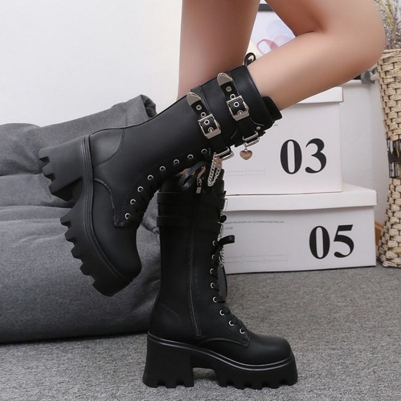 รองเท้าบูทสูงคลุมเข่าสไตล์อังกฤษสำหรับผู้หญิงรองเท้าบูทเพิ่มความสูงส้นหนามีซิปบูทสูงถึงเข่าสำหรับฤดูใบไม้ร่วง/ฤดูหนาว