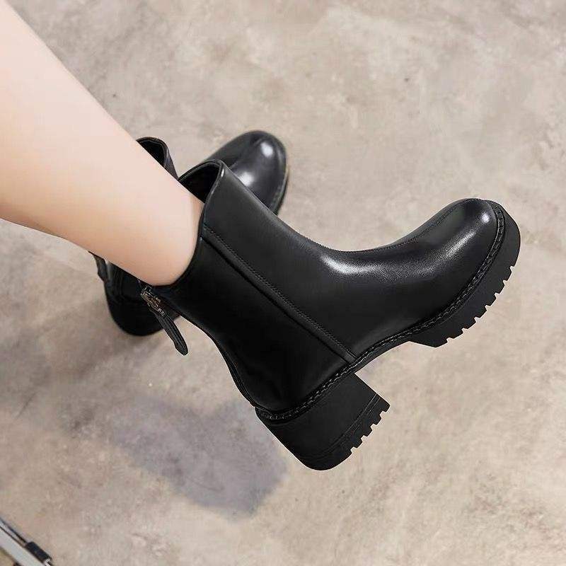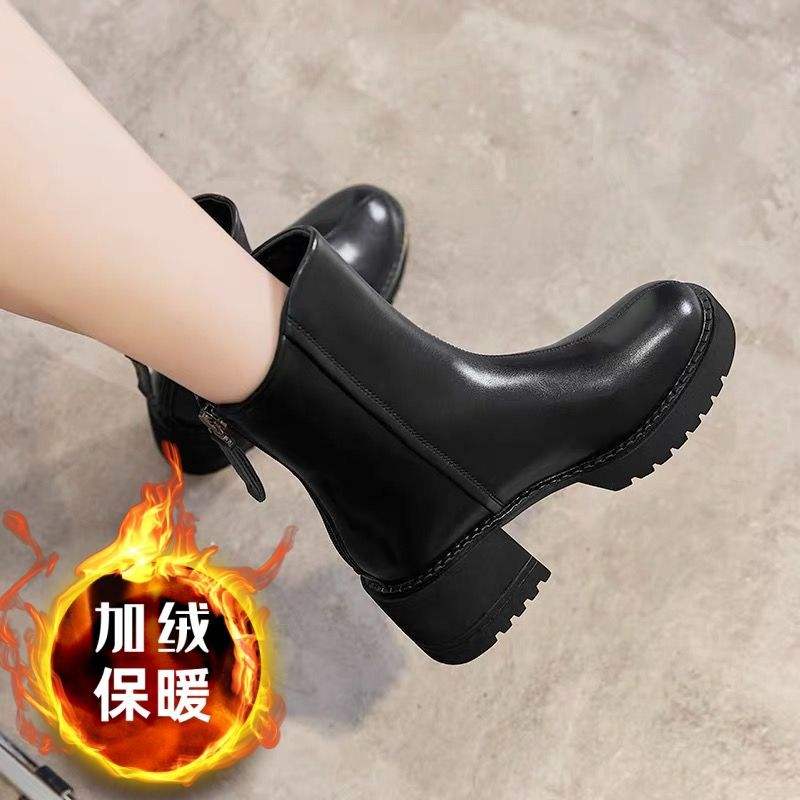 รองเท้าบูทสไตล์อังกฤษสำหรับผู้หญิง, รองเท้าบูทกำมะหยี่ส้นสูงส้นหนารองเท้าบูทเชลซีฤดูหนาวรองเท้าบูทสั้นแฟชั่น