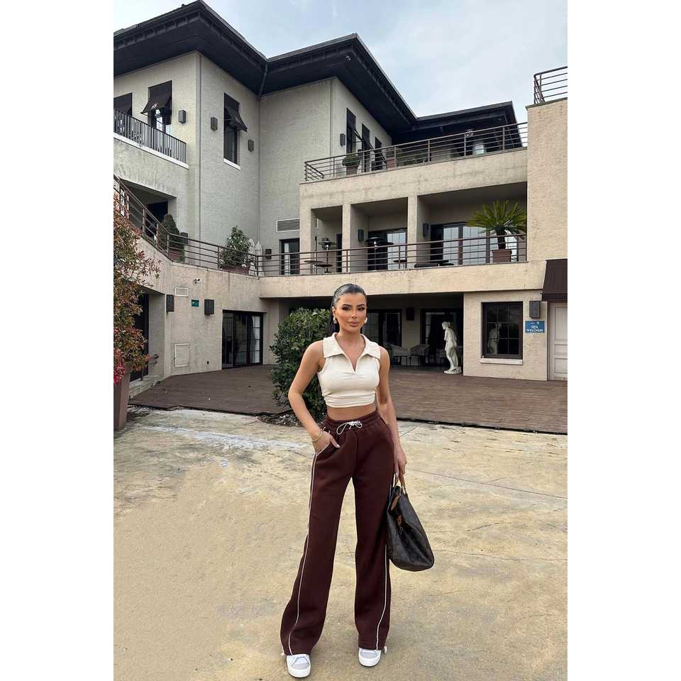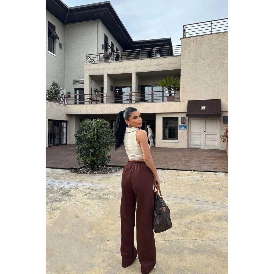 เสื้อฮู้ดดี้และเสื้อสเวตเชิ้ตสีน้ำตาลสำหรับผู้หญิง กางเกงวอร์มใส่สบาย