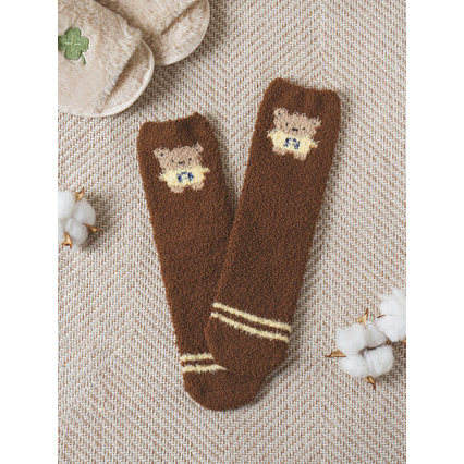 Women's Brown Bear Sleeping Socks Disposable Ankle-Length Nylon Plaid and Rainbow Embroidery Breathable and Warm for Winter