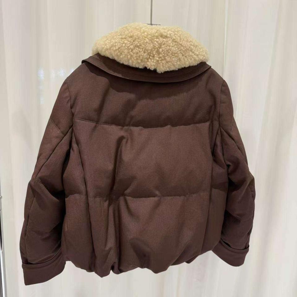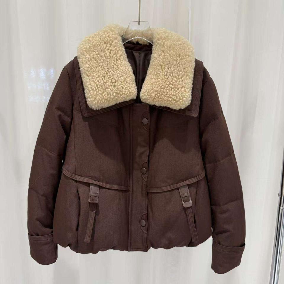 แจ็กเก็ตขนเป็ดสีน้ำตาลมีฮู้ดสำหรับผู้หญิงกันน้ำระบายอากาศได้ดีเหมาะสำหรับใส่กลางแจ้ง