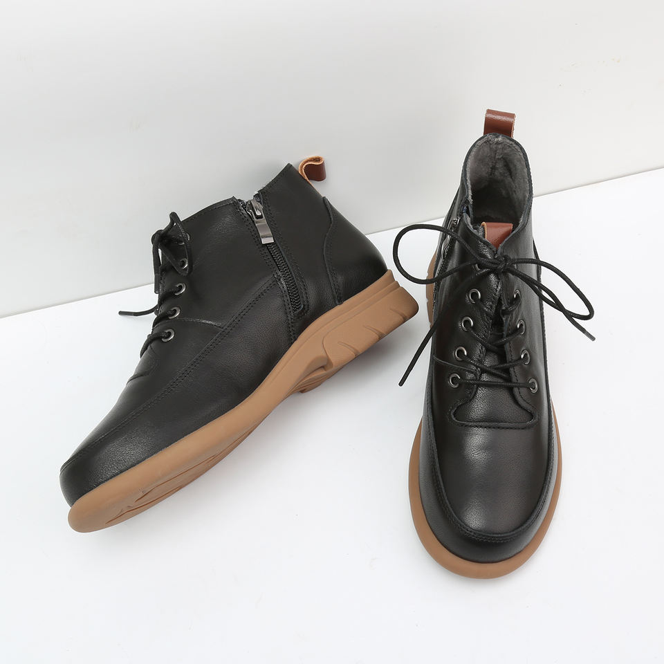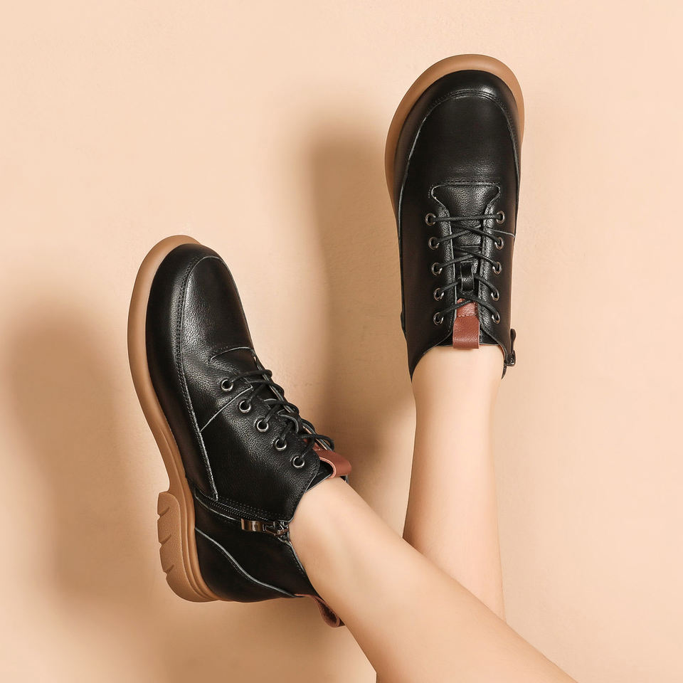 รองเท้าบูทหุ้มข้อสูงหนังนิ่มสีน้ำตาลสำหรับผู้หญิง แบบผูกเชือกและซิป ดีไซน์ทันสมัย ส้นหนา พื้นนุ่ม สวมใส่สบาย เหมาะสำหรับฤดูใบไม้ร่วงและฤดูหนาว