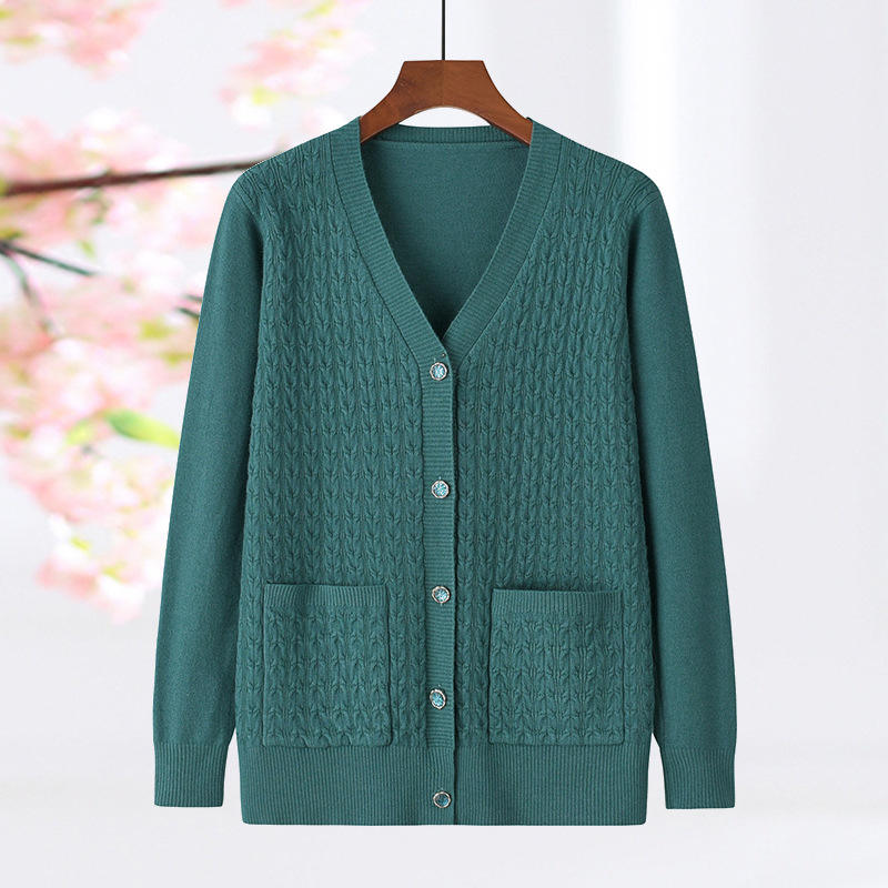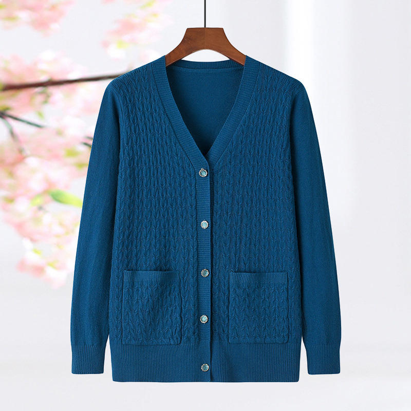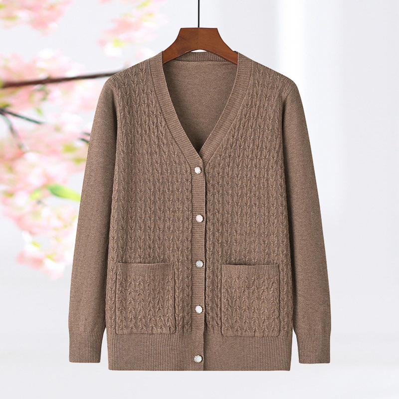 เสื้อคาร์ดิแกนถักลายเคเบิ้ลสำหรับผู้หญิง - เสื้อสเวตเตอร์ถักคอวีติดกระดุมด้านหน้าพร้อมกระเป๋าแฟชั่น