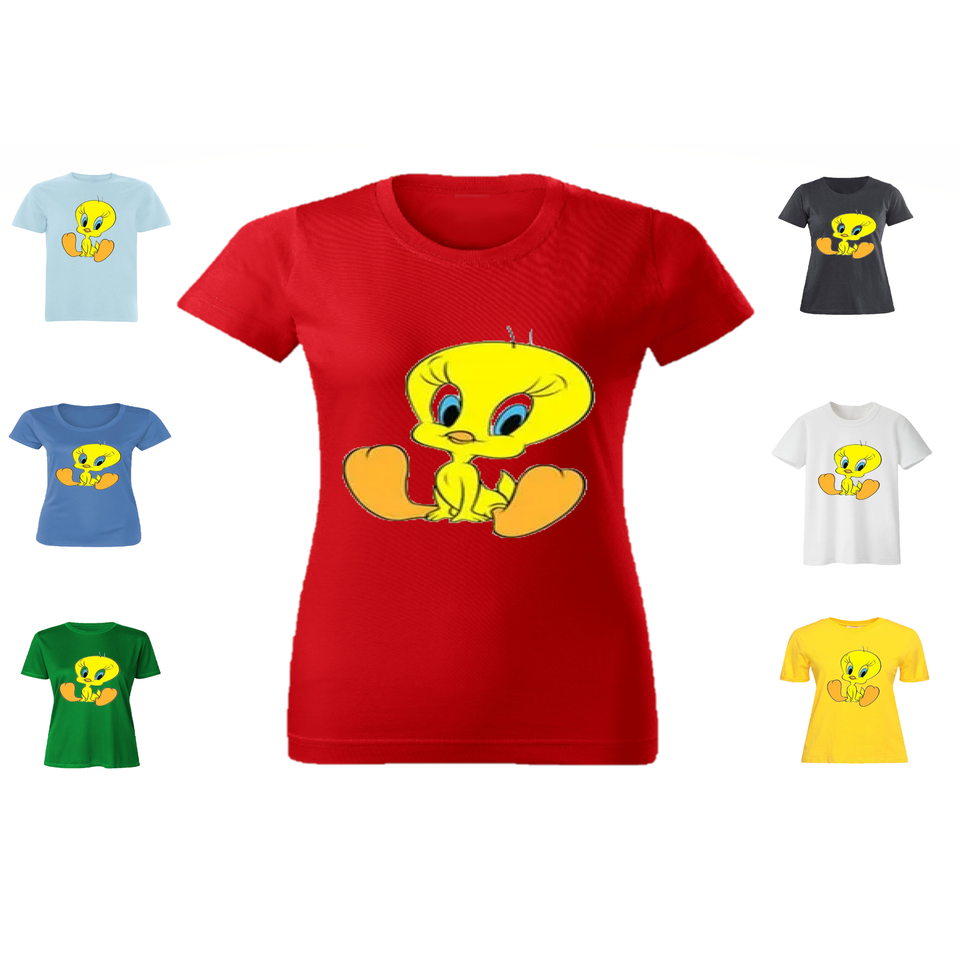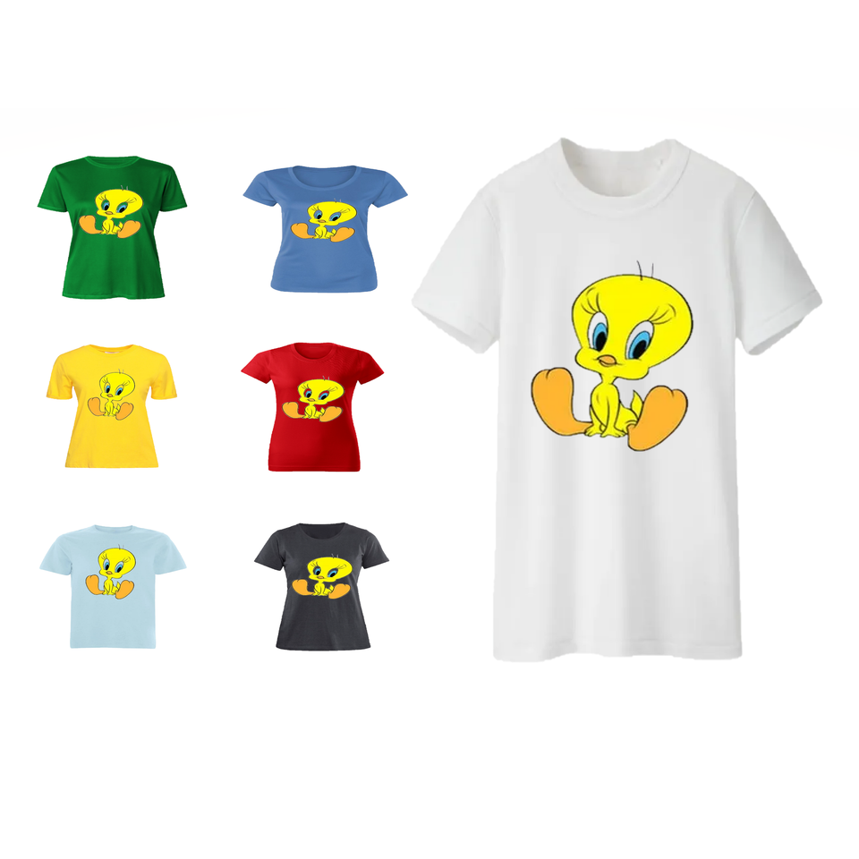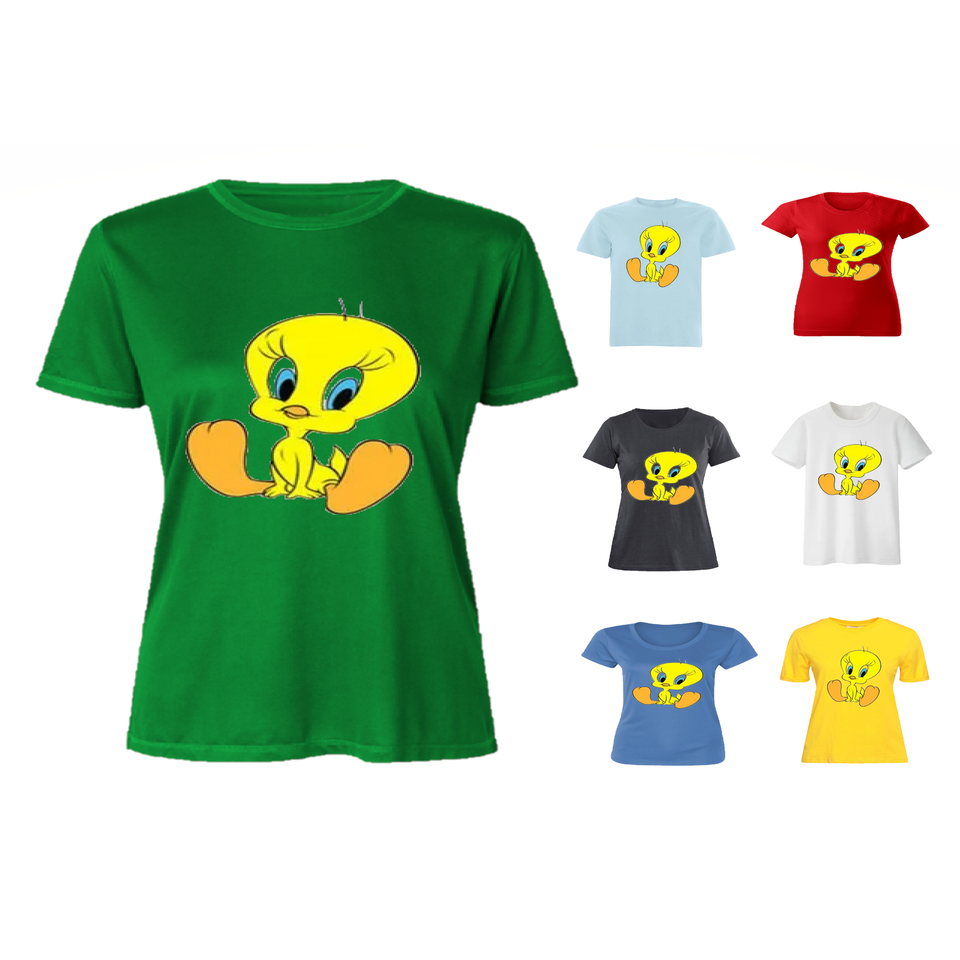 Women's Cartoon Bird Print Short Sleeve T Shirt Good Quality Polyester Custom Logo Hand Knitted Women's Printed T Shirt
