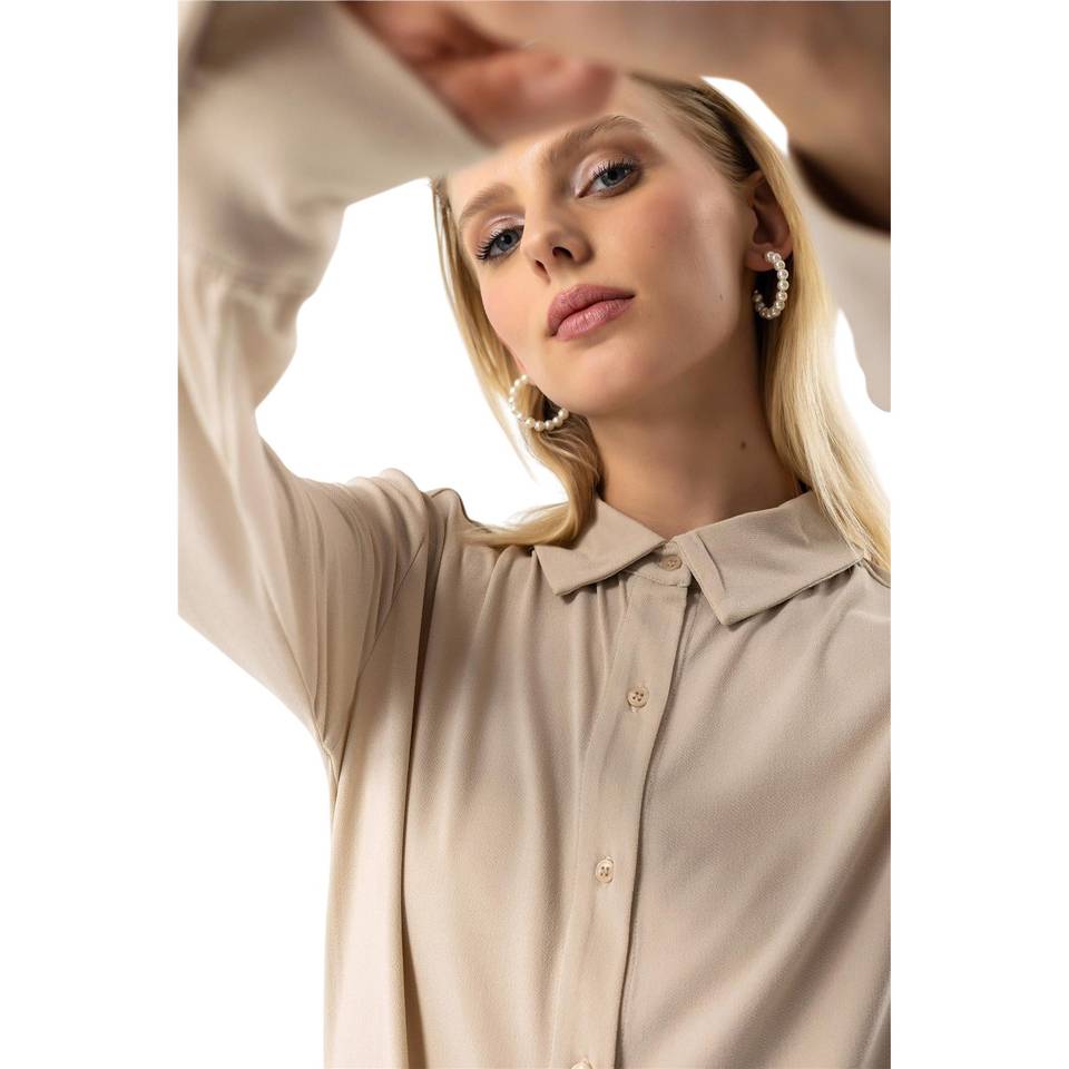 เสื้อเบลาส์แขนยาวคอกลมผ้าฝ้าย 100% ลำลองสำหรับผู้หญิงพร้อมโลโก้ด้านหน้า