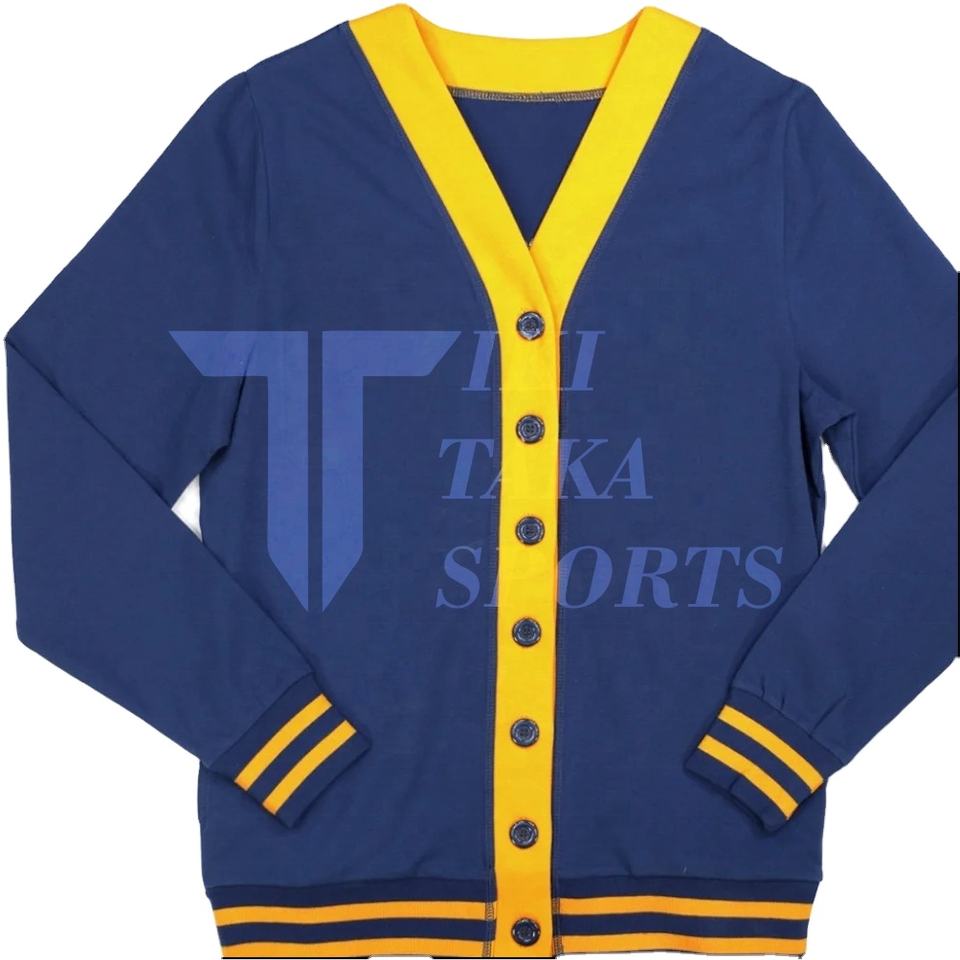 เสื้อคาร์ดิแกนถักแบบยูนิเซ็กซ์ลำลองสำหรับฤดูใบไม้ร่วงและฤดูหนาว ป้องกันรอยยับ คอลเลคชั่น Sororities ลายปะติดปะต่อ พร้อมเชือกผูกคอ ซับในผ้าฝ้าย