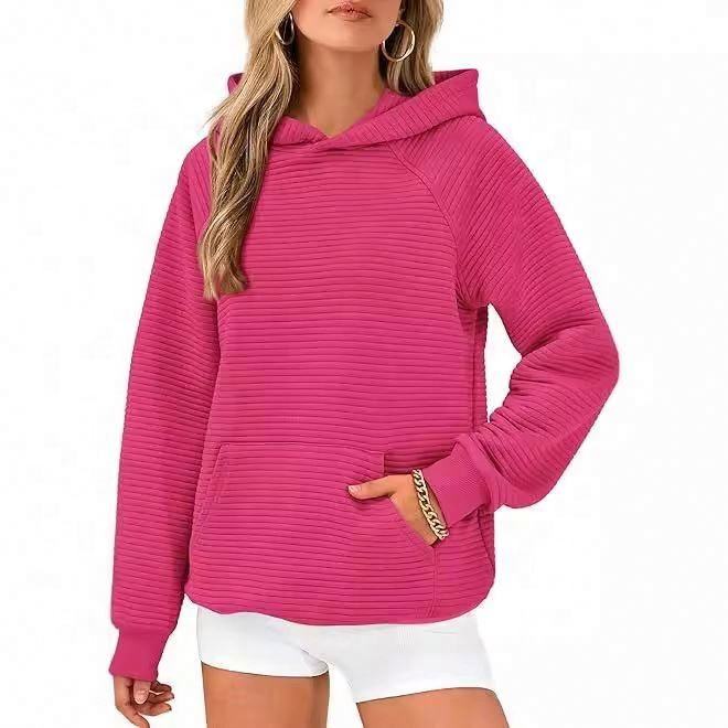 เสื้อแขนยาวลำลองสำหรับผู้หญิงฤดูใบไม้ร่วง/ฤดูหนาวมีฮู้ดแบบสวมหัวมีกระเป๋าด้านหน้าทอเสื้อแฟชั่นใหม่สำหรับผู้หญิง