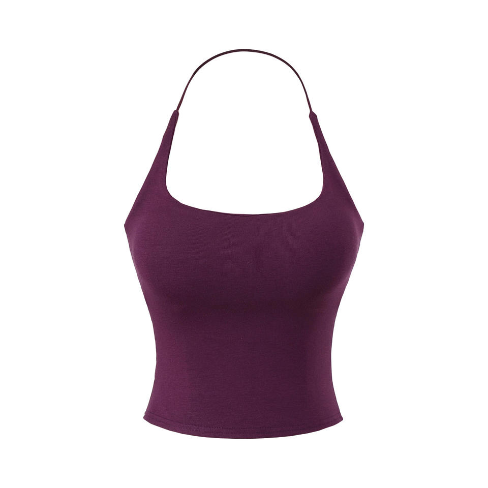 เสื้อกล้ามผู้หญิงแบบลำลอง คอ halter ผ้าถักแบบเป็นมิตรต่อสิ่งแวดล้อม ทำจากผ้าโมดอล/คอตตอน ระบายอากาศได้ดี ยืดหยุ่นได้ ทรงสั้นปกติ ถอดออกได้
