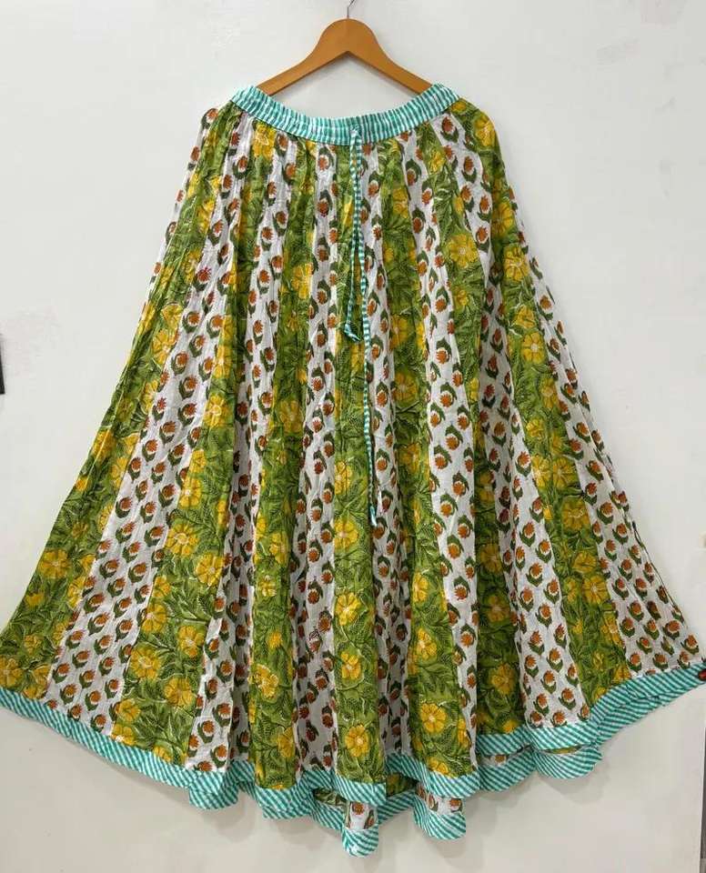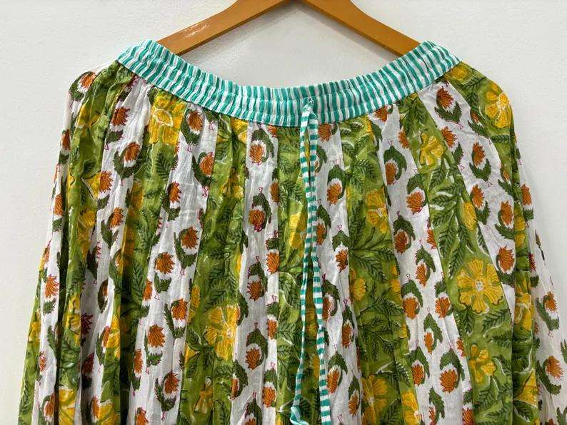 กระโปรงยาวสไตล์โบฮีเมียนลำลองสำหรับผู้หญิง ทำมือจากผ้าฝ้าย 100% พร้อมเสื้อท่อนบนลายดอกไม้สุดเก๋