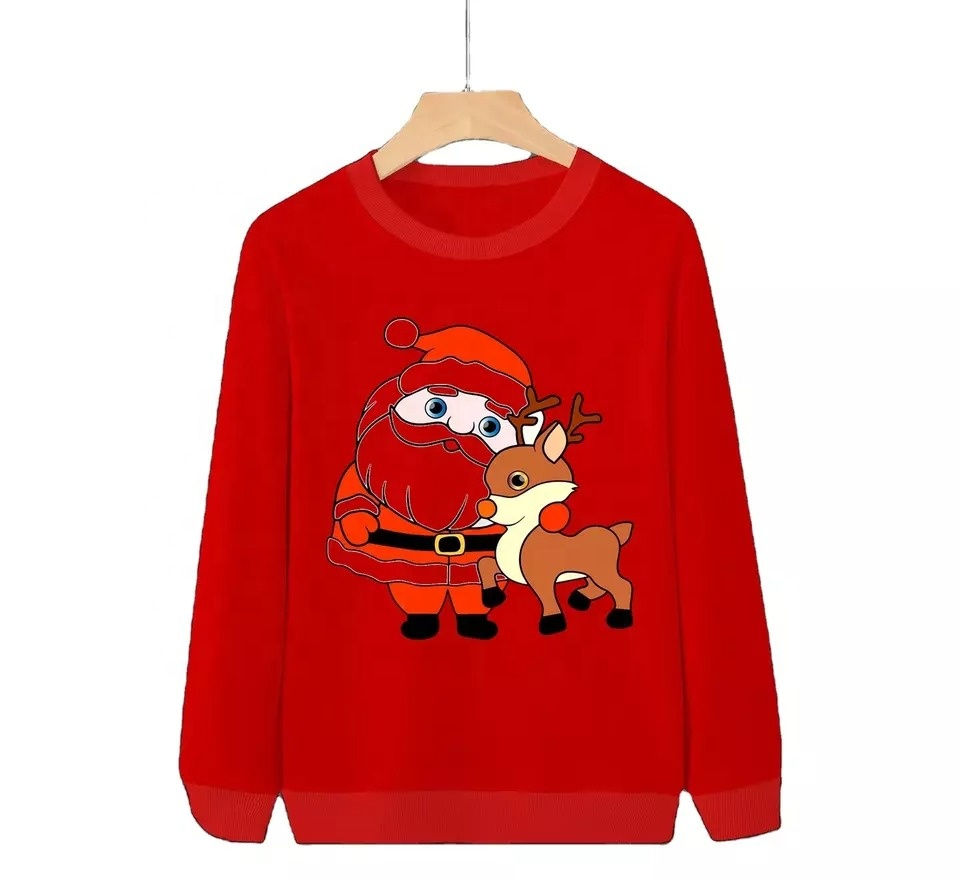 เสื้อสเวตเชิ้ตแขนยาวคอกลมพิมพ์ลายคริสต์มาสสำหรับผู้หญิง ผ้าถักทั้งตัว ระบายอากาศได้ดี เหมาะสำหรับฤดูหนาว