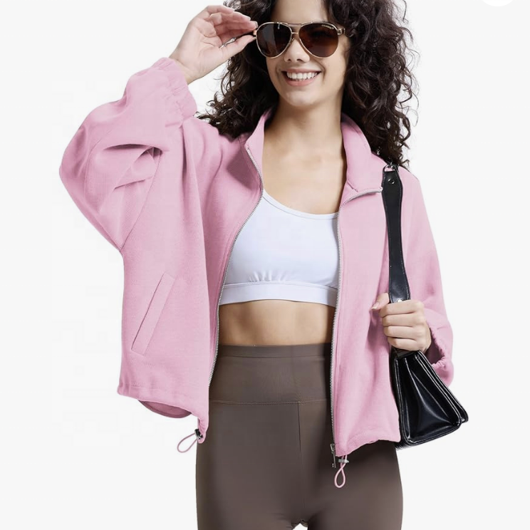 เสื้อเชิ้ตและเสื้อครอปแขนกุดมีฮู้ดแบบสั้นสำหรับผู้หญิง ผ้าฟลีซระบายอากาศได้ดี คอตั้ง ซิปยาวเต็มตัว สไตล์ลำลอง