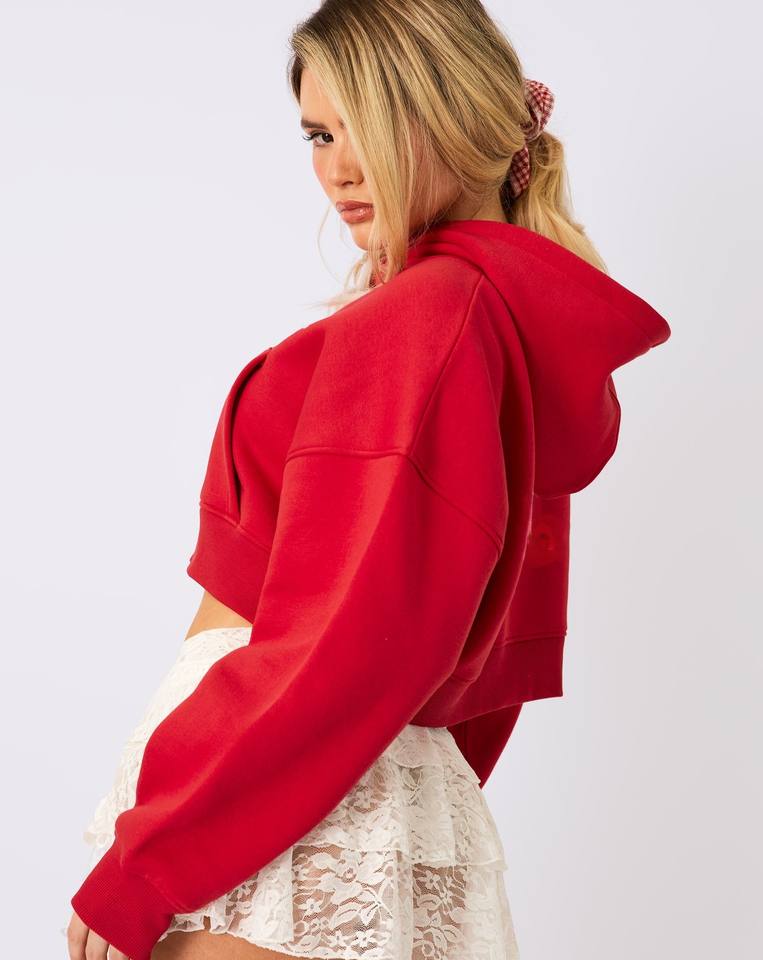 เสื้อสเวตเตอร์มีฮู้ดคอปกตั้งระบายอากาศลำลองของผู้หญิงสีพื้นสไตล์เกาหลีแบบสั้นมีฮู้ดลายวงกลมฤดูใบไม้ผลิฤดูใบไม้ร่วง