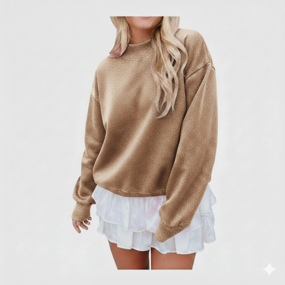 เสื้อสเวตเชิ้ตโอเวอร์ไซส์ผ้าฝ้ายฟลีซลำลองสำหรับผู้หญิง คอเต่า แขนยาว สวมใส่สบายสำหรับฤดูหนาวและฤดูใบไม้ร่วง มีโลโก้ด้านหน้า