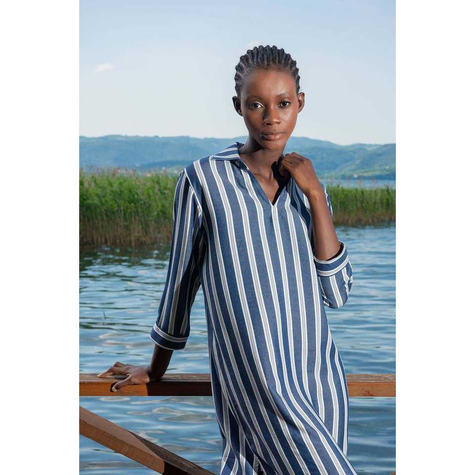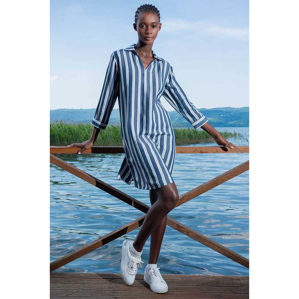 เดรสผ้าฝ้ายวิสโคสลำลองสำหรับผู้หญิง แขน 7/8 คอวี