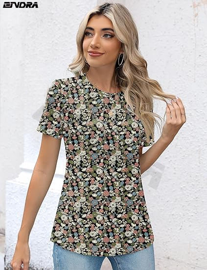 ผู้หญิงลําลองลูกเรือคอแขนสั้นจีบเสื้อเสื้อแฟชั่นเสื้อผ้า 2024