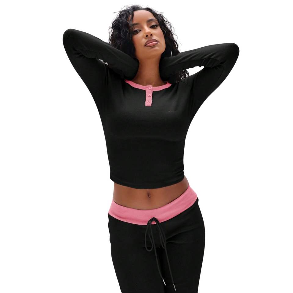 เสื้อครอปแขนยาวผู้หญิง ผ้าวาฟเฟิล
