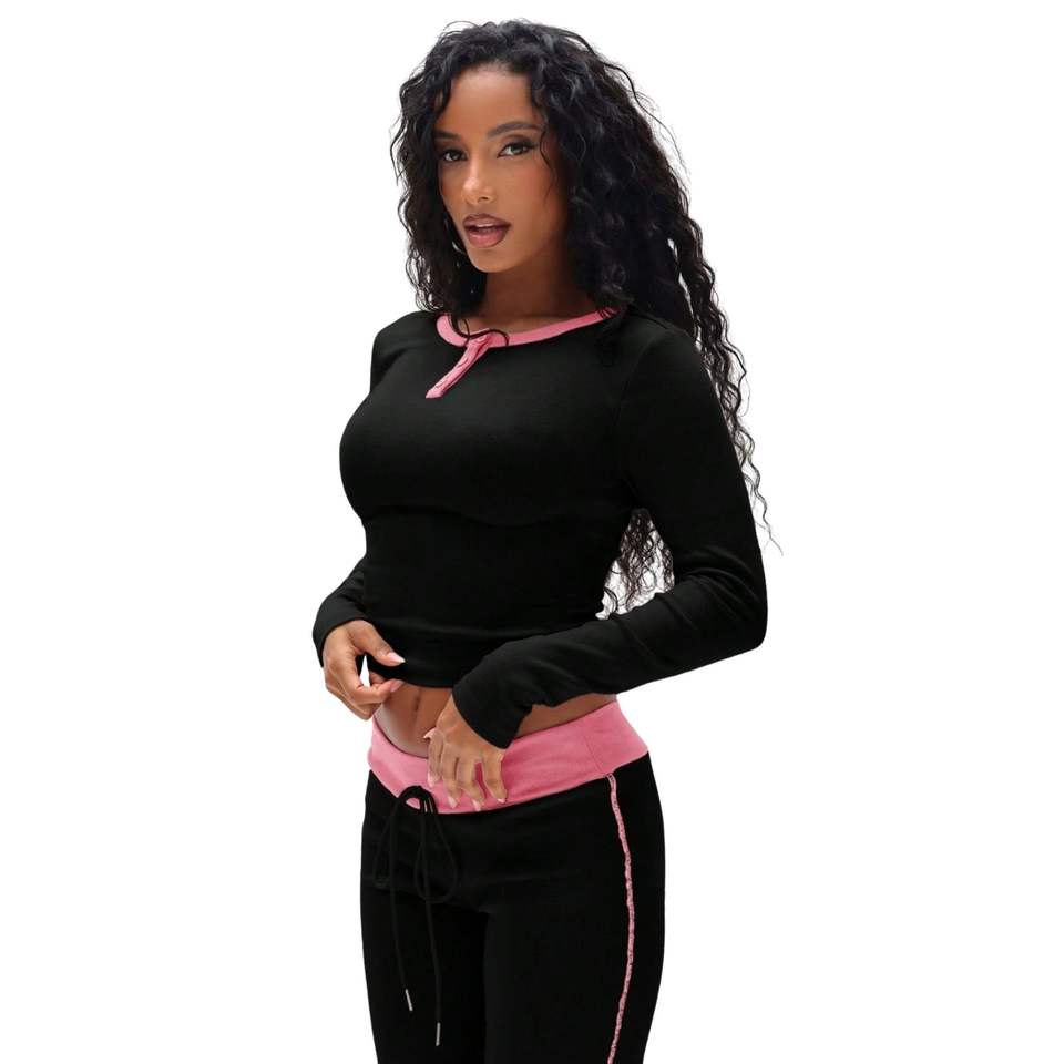 ชื่อสินค้า:เสื้อครอปแขนยาวผู้หญิง ผ้าวาฟเฟิล