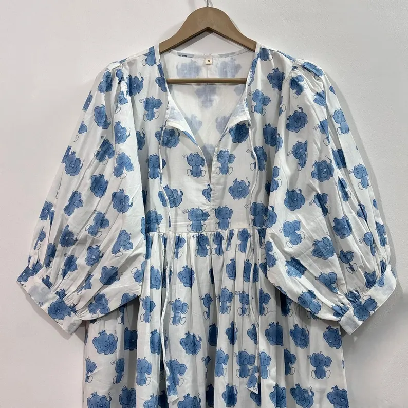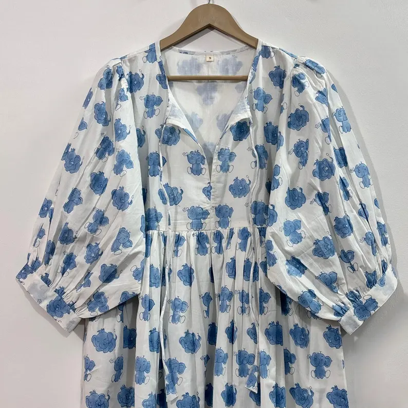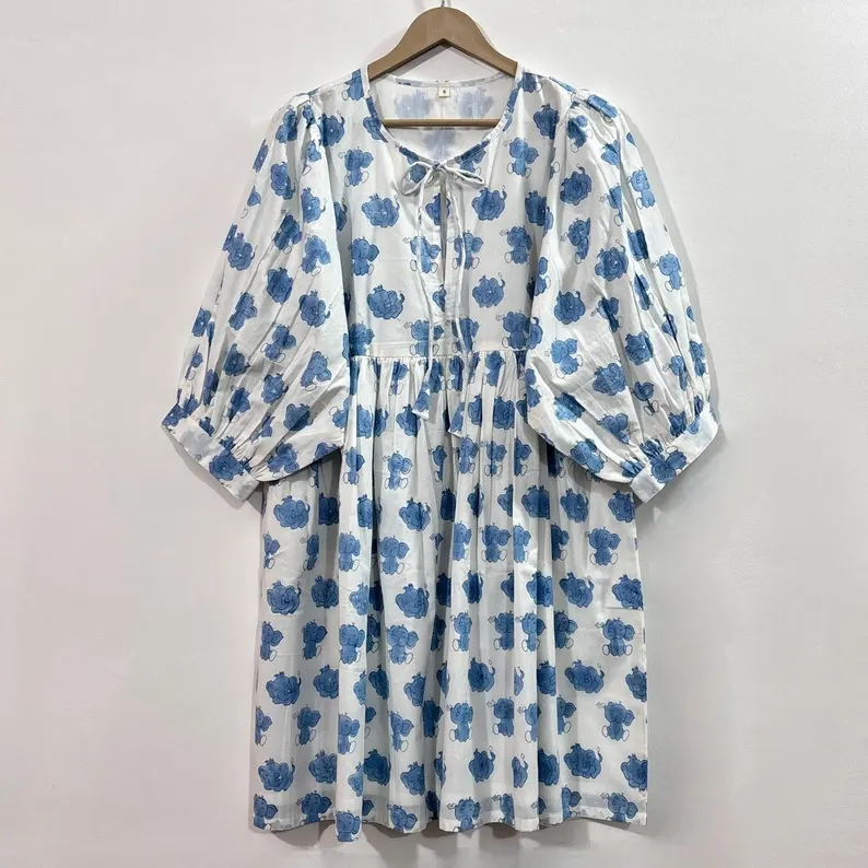 เดรสลำลองผู้หญิงผ้าฝ้ายทอสีพื้น/เรียบ แขนทรงบอลลูน เอวทรงเอ็มไพร์ ทรงเบบี้ดอลล์ คอวีทรงโอเวอร์ไซส์ ทรงหลวม