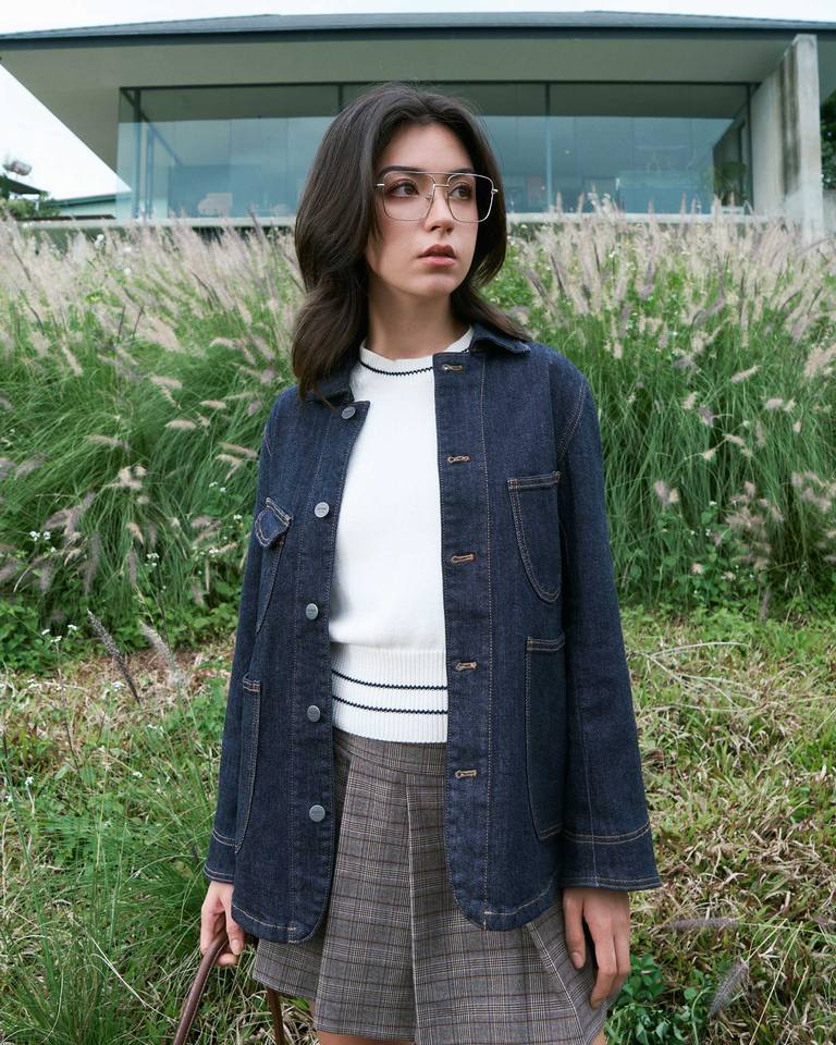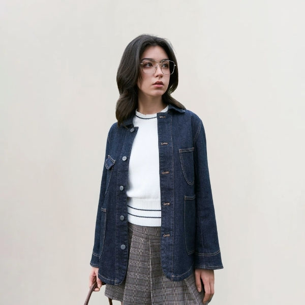 แจ็คเก็ตยีนส์สีกรมกรมท่าสำหรับผู้หญิง สไตล์ลำลอง ปิดด้วยซิป เป็นมิตรกับสิ่งแวดล้อม กันน้ำ กันลม เหมาะสำหรับฤดูใบไม้ร่วง/ฤดูหนาว ทรงปกติ สีพื้น ใช้งานได้ทุกวัน