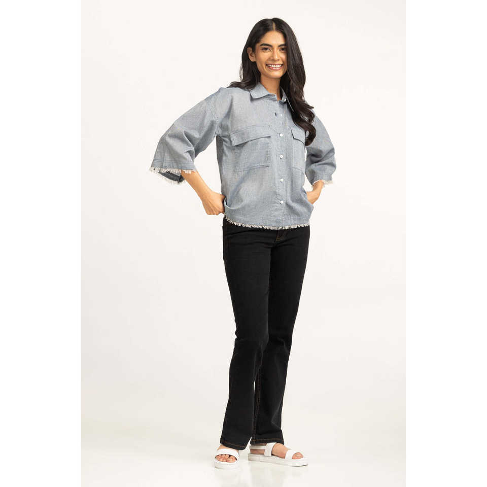 เสื้อเชิ้ตยีนส์ลำลองผู้หญิง รุ่น WM-CS-SS25-409 เสื้อเชิ้ตทำงานสีสันสดใส ไซส์ XS-XL ทรงเข้ารูป ติดกระดุม เหมาะสำหรับฤดูร้อน ฤดูใบไม้ผลิ ฤดูใบไม้ร่วง