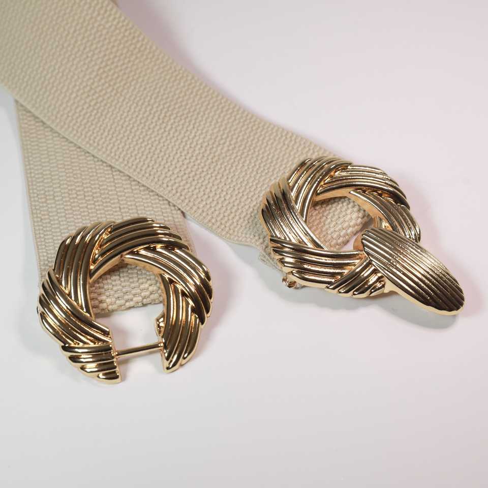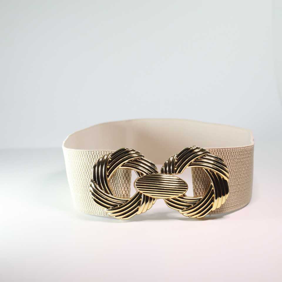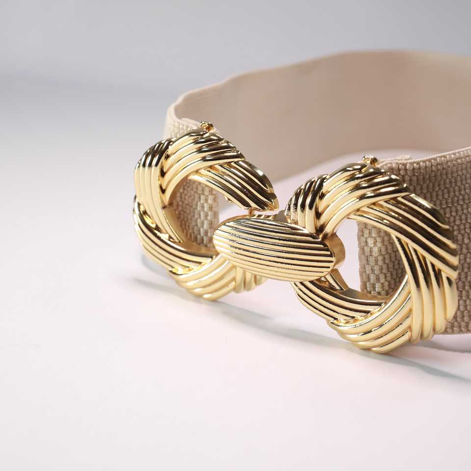 เข็มขัดยางยืดลำลองสำหรับผู้หญิงพร้อมหัวเข็มขัดโลหะผสมสีทอง