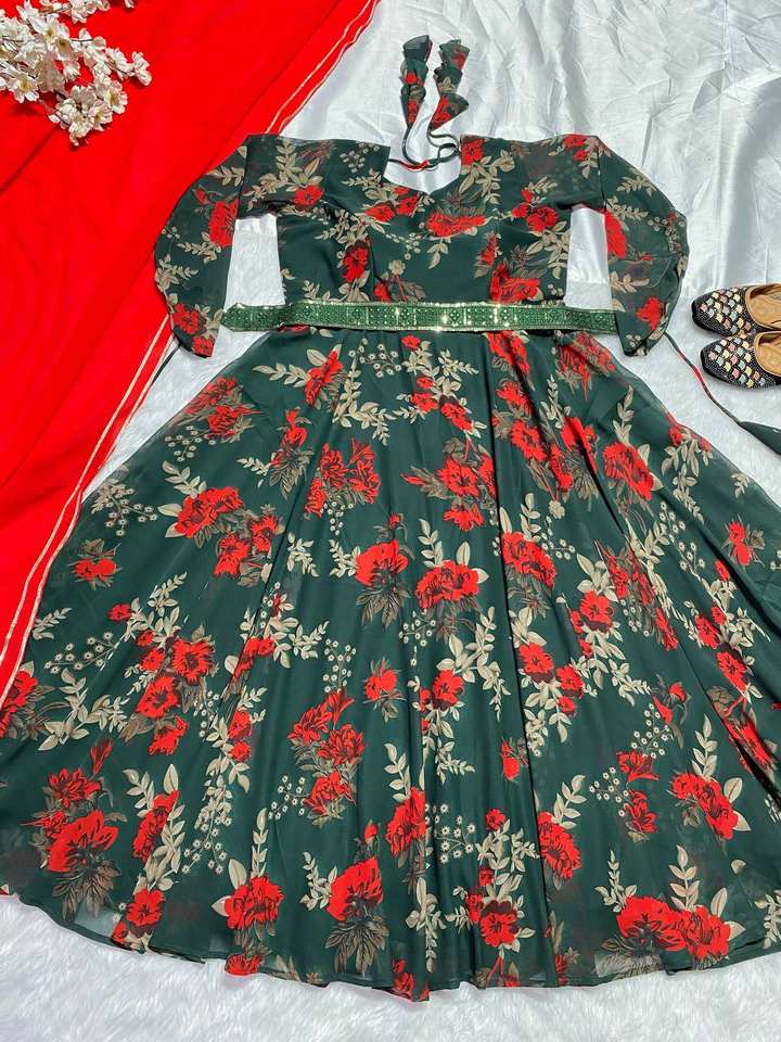 Anarkali ชุดกระโปรงบานแบบลำลองของผู้หญิงมีหลายสีพิมพ์ลายดอกไม้ฟรีไซส์