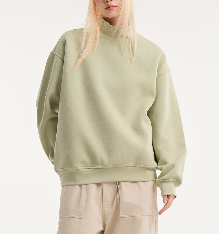 เสื้อสเวตเชิ้ตผู้หญิงแบบลำลอง คอสูง เปิดไหล่ ผ้าฝ้ายผสมขนแกะ 80/20 อุ่นสบายสำหรับฤดูหนาว มีโลโก้