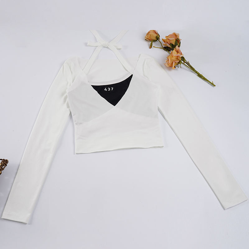 เสื้อถักลำลองสำหรับผู้หญิง พิมพ์ลายดิจิทัล แบบพันรอบคอ สายคล้องคอ คอวี ทรงเข้ารูป ยืดหยุ่น แขนยาว เสื้อคลุม